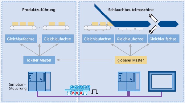 erhalten werden. Dezentrale Simotion-Steuerungen synchronisieren ihre