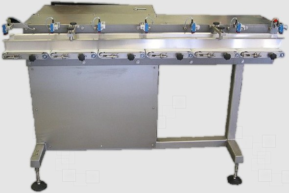| die sechs Fliessbänder unserer Vorführanlage bringen die Produkte auf