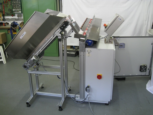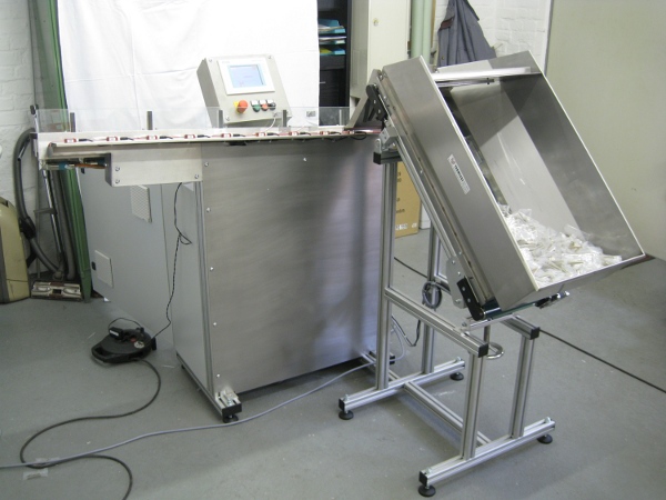 | Schraubenbeutelvereinzelung mit Bunker von der Seite |